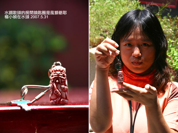 去年去看夏墅風獅爺時,祂的旁邊正在蓋房子,整個人都像被關在鷹架內,鷹架還差點直直刺進祂的嘴巴。當時我一直很擔心,擔心祂的未來,不知道房子蓋好後祂會不會被遷移到別的地方,還好這次再去夏墅,看到祂完好無缺,除了身上的漆一樣斑駁之外,被納入這戶人家院子中的夏墅風獅爺,前後都被盆栽包圍了,看來房子主人有費了一番心思布置風獅爺的家,真是感到滿安慰的。